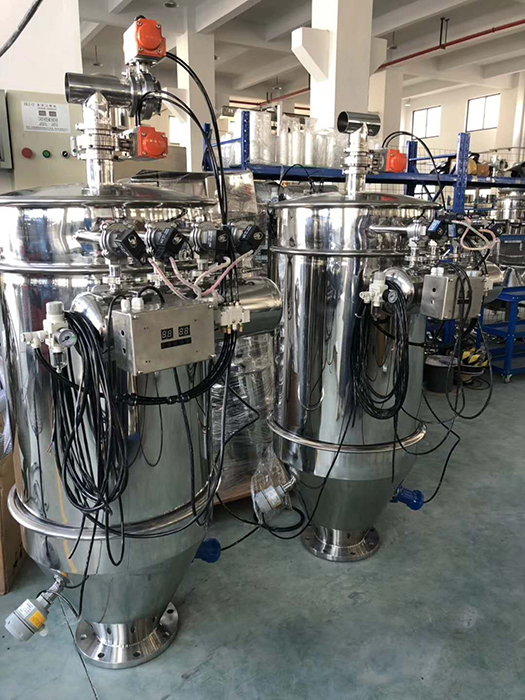 說明:采用真空輸送原理,可將各種粉末及顆粒料從貯料容器輸送到任一塑料機械加工的料斗中??膳c型材機組、配混系統、化工加工設備配套使用??纱嫒斯ぜ恿?,在生產過程中實現全封閉自動化,放心可靠綠色環保。